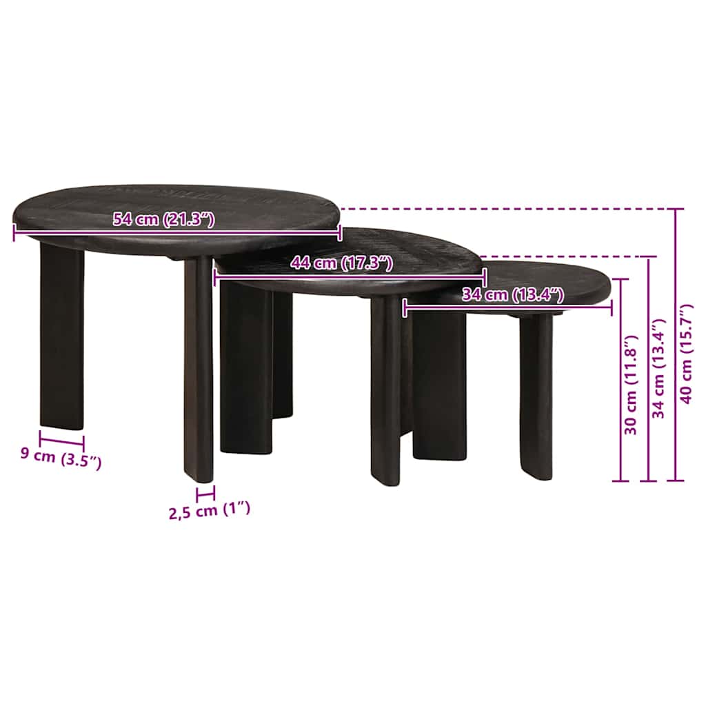 vidaXL Τραπεζάκια Καφέ Στερεών 3 pcs Λευκό Στερεό ξύλο μάνγκο