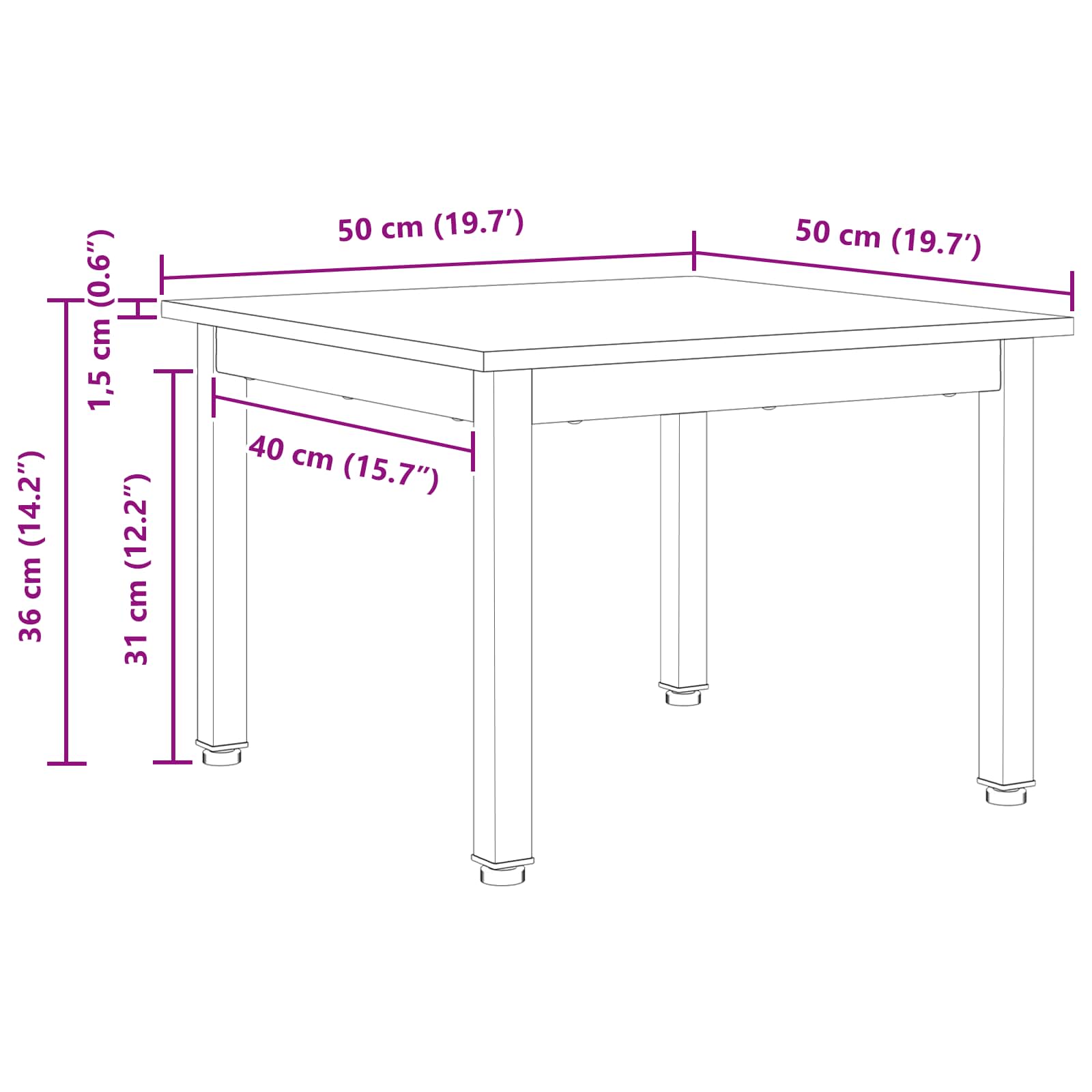 - Συνολικές διαστάσεις: 50 x 50 x 36 εκ (Μ x Π x Υ)