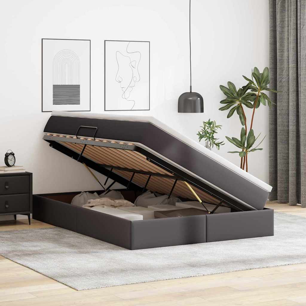 vidaXL Κρεβάτι με αποθηκευτικό χώρο και στρώμα Γκρι 140 x 200 cm