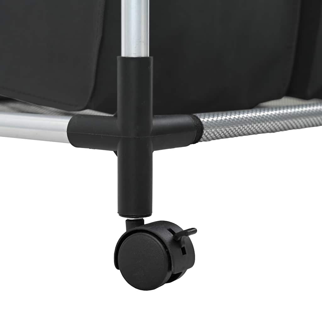 Το συγκεκριμένο καλάθι είναι κατάλληλο για την οργάνωση των άπλητων ρούχων είτε βρίσκονται στο μπάνιο ή στην ντουλάπα σας. Είναι η ιδανική επιλογή για τις προσωπικές σας ανάγκες. Διαθέτει τέσσερις σάκους διαλογής πλήρους μεγέθους που μπορούν εύκολα να αφαιρεθούν για να μεταφέρετε τα άπλυτα χρησιμοποιώντας τις ατσάλινες λαβές. Τα καρούλια και οι λαβές σε κάθε άκρη του καροτσιού διευκολύνουν τη μετακίνησή του. Ο ανθεκτικός ατσάλινος σκελετός υποστηρίζει μεγάλο βάρος μέχρι 20kg. Έχει εύκολη συναρμολόγηση και συντήρηση.