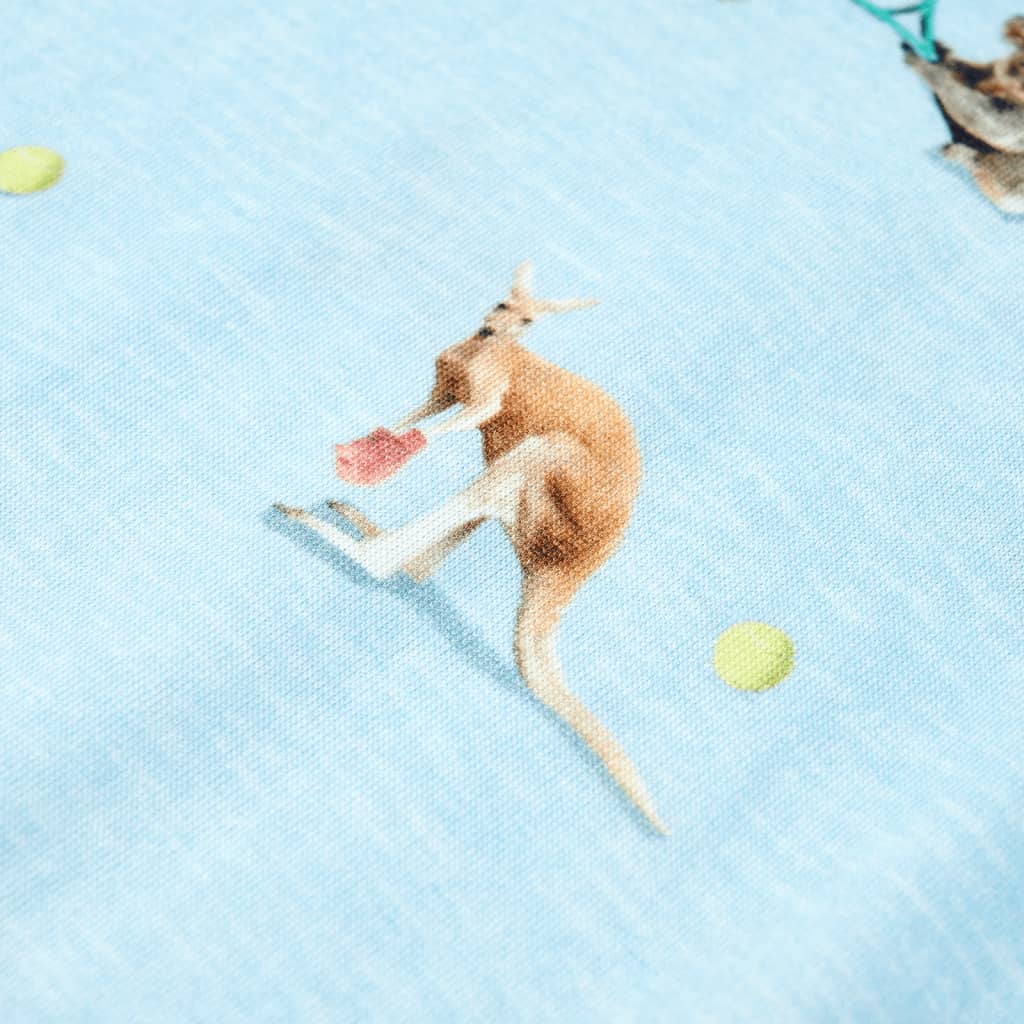 Αυτό το παιδικό μπλουζάκι έχει κοντό μανίκι, στρογγυλή λαιμόκοψη και ίσια εφαρμογή. Αυτό το μπλουζάκι διαθέτει διάφορα ζώα, μπάλες του τένις και σκέιτμπορντ. Το παιδικό κοντομάνικο μπλουζάκι είναι κατασκευασμένο από 100% βαμβάκι για να είναι απαλό και άνετο.