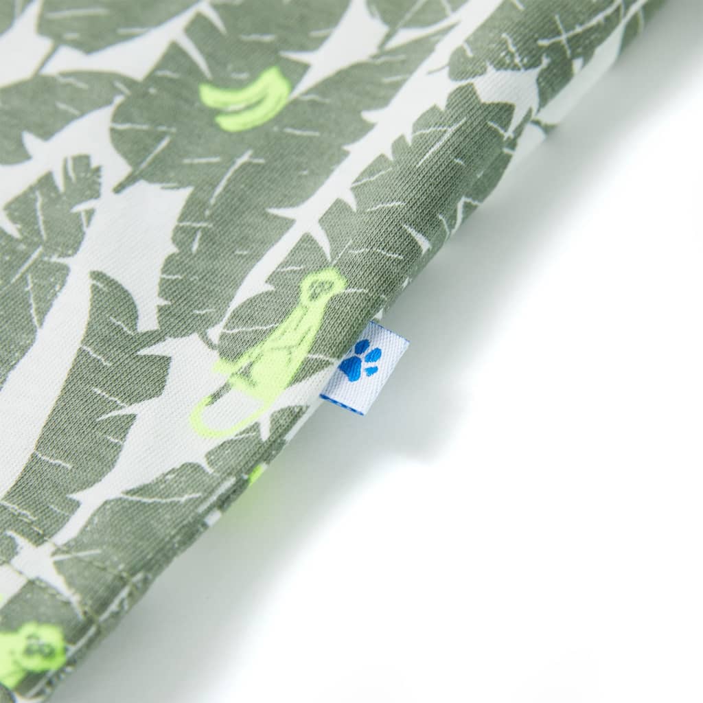 Αυτό το παιδικό μπλουζάκι έχει κοντό μανίκι, στρογγυλή λαιμόκοψη και ίσια εφαρμογή. Το παιδικό μπλουζάκι είναι τυπωμένο με φύλλα και μαϊμουδάκια σε όλη την επιφάνεια. Το παιδικό κοντομάνικο μπλουζάκι είναι κατασκευασμένο από 100% βαμβάκι για να είναι απαλό και άνετο.