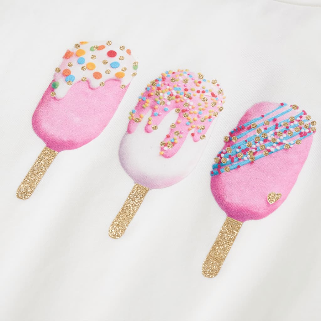 Αυτό το παιδικό μπλουζάκι έχει κοντό μανίκι, στρογγυλή λαιμόκοψη και ίσια εφαρμογή. Αυτό το παιδικό μπλουζάκι έχει σχέδιο με παγωτά. Το παιδικό κοντομάνικο μπλουζάκι είναι κατασκευασμένο από 95% βαμβάκι για να είναι απαλό και άνετο.