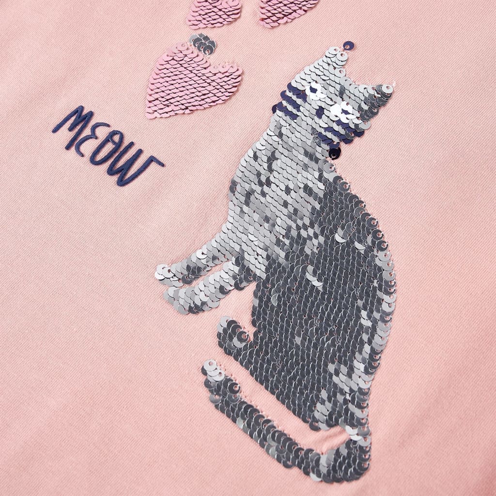 Αυτό το παιδικό μπλουζάκι έχει μακριά μανίκια, στρογγυλή λαιμόκοψη και ίσια γραμμή. Αυτό το ανοιχτό ροζ μπλουζάκι έχει σχέδιο μια γάτα και καρδιές με παγιέτες. Το παιδικό μακρυμάνικο μπλουζάκι είναι κατασκευασμένο από μαλακό υλικό με 95% βαμβάκι και 5% ελαστάνη για επιπλέον άνεση και διαπνοή.
