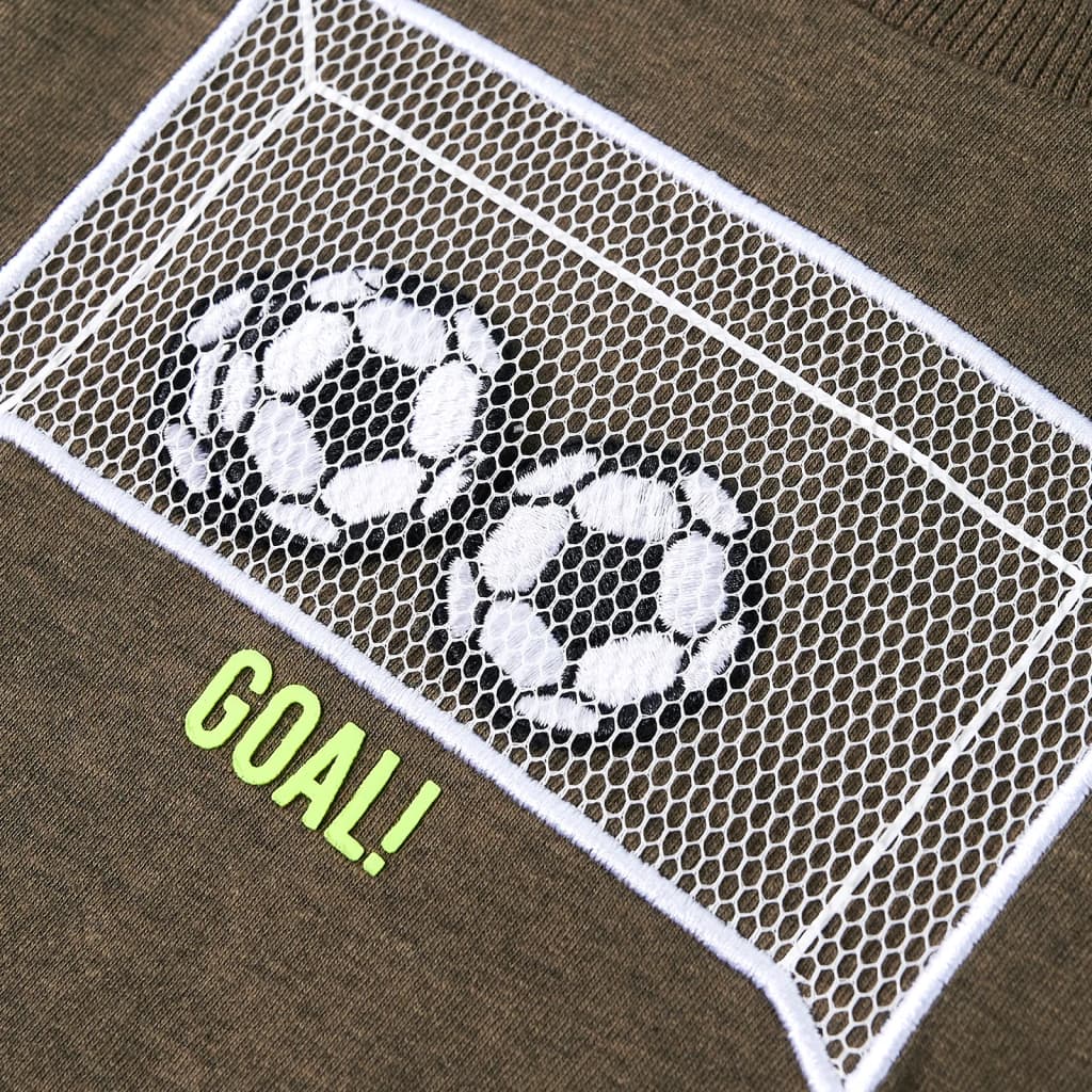 Αυτό το παιδικό μπλουζάκι έχει μακριά μανίκια, στρογγυλή λαιμόκοψη και ίσια εφαρμογή. Αυτό το παιδικό μπλουζάκι σε χακί μελανζέ χρώμα έχει ένα σχέδιο με ένα τέρμα. Το παιδικό μακρυμάνικο μπλουζάκι είναι κατασκευασμένο από 80% βαμβάκι και 20% βισκόζη που επεξεργάζεται με έκπλυση σιλικόνης και ενζύμων για να είναι απαλό και άνετο.