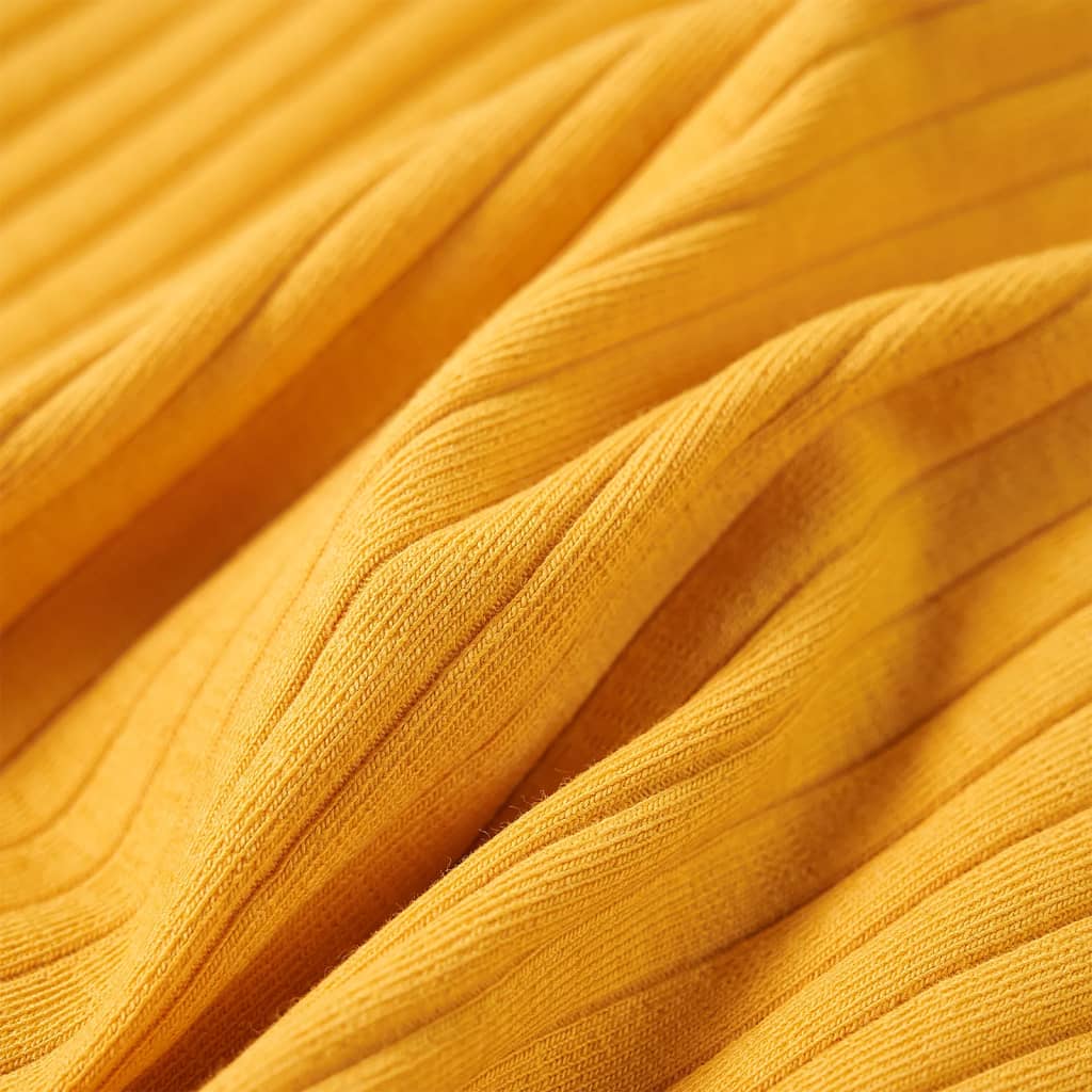 Αυτό το παιδικό μπλουζάκι έχει μακριά μανίκια, στρογγυλή λαιμόκοψη και ίσια γραμμή. Αυτό το μπλουζάκι σε χρώμα ώχρας είναι διακοσμημένο με φιογκάκι. Το παιδικό μακρυμάνικο μπλουζάκι είναι κατασκευασμένο από μαλακό υλικό με 95% βαμβάκι και 5% ελαστάνη για επιπλέον άνεση και διαπνοή.