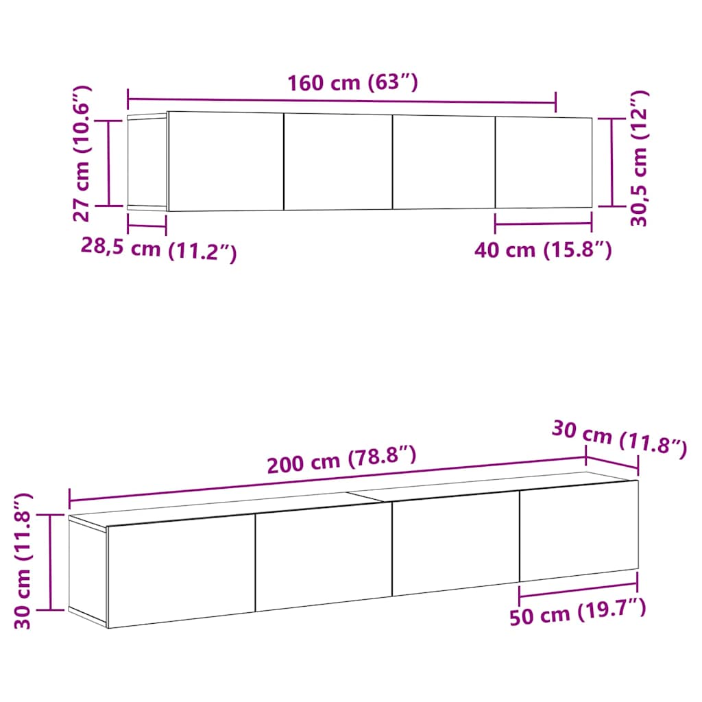 σετ βάθρου τηλεόρασης 4 τεμαχίων vidaXL Μαύρο Επεξεργασμένο Ξύλο