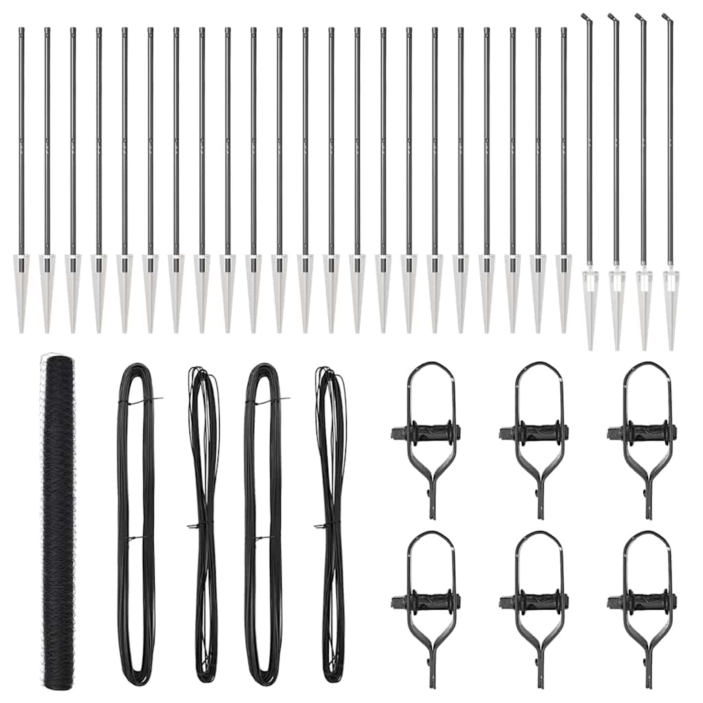 - Ολοκληρωμένο Κιτ: Αυτό το σετ φράχτη περιέχει όλα όσα χρειάζεσαι: φράχτες, άγκυρες στήριξης, καλώδια τάσης και εξαρτήματα για εύκολη εγκατάσταση.