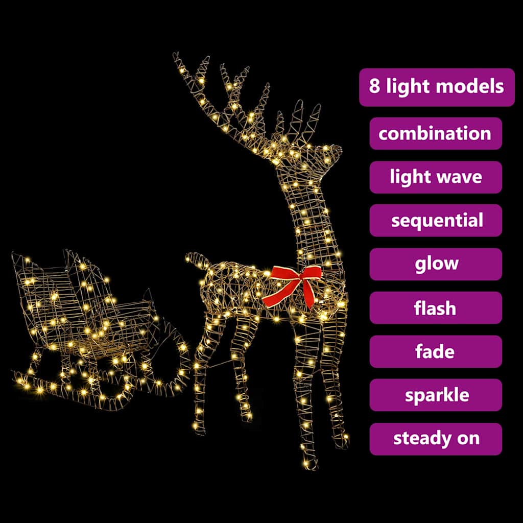 vidaXL Έλκηθρο με Ελάφια Θερμό λευκό 70 x 26 x 128,5 εκ Ρατάν