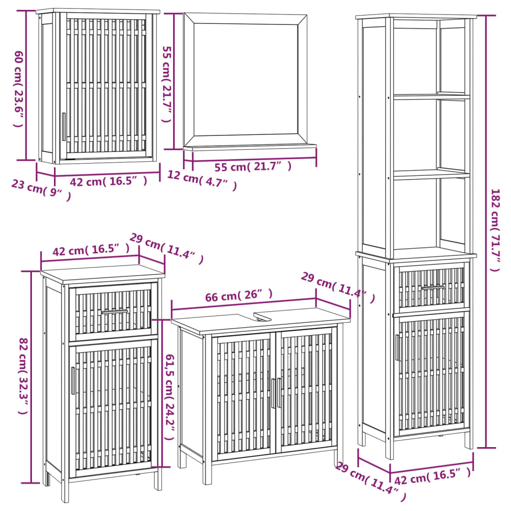 vidaXL Έπιπλα Μπάνιου Σετ 5 Τεμαχίων από Μασίφ Ξύλο Καρυδιάς
