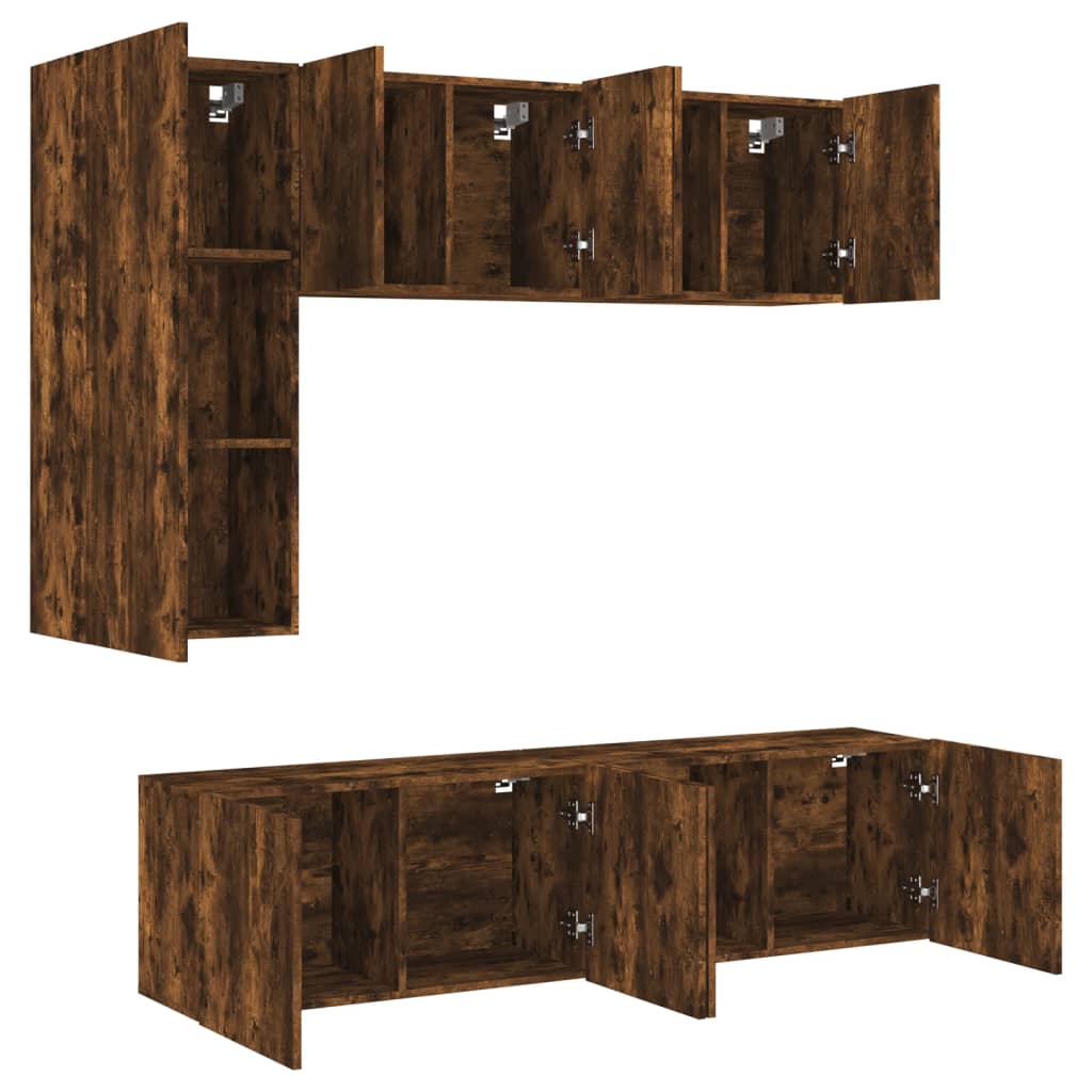 vidaXL Έπιπλα Τηλεόρασης Τοίχου 5 τεμ. Καπνιστή Δρυς από Επεξ. Ξύλο