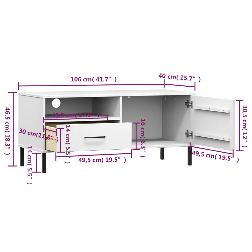 vidaXL Έπιπλο Τηλεόρασης OSLO Λευκό Μασίφ Ξύλο Πεύκου με Μετ. Πόδια