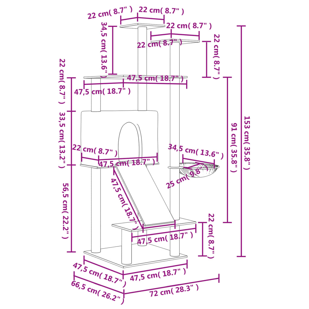 vidaXL Γατόδεντρο Σκούρο Γκρι 153 εκ. με Στύλους Ξυσίματος από Σιζάλ