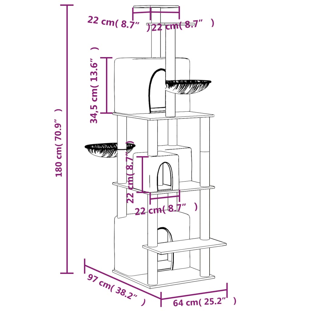 • Πύργος γάτας «όλα σε ένα»: Αυτό το έπιπλο πολλαπλών επιπέδων για γάτες είναι σχεδιασμένο με 4 σπίτια, 2 αιώρες και πλατφόρμες, παρέχοντας το ιδανικό μέρος ώστε οι γάτες σας να σκαρφαλώνουν, να κάθονται, να ξύνονται, να κρύβονται, καθώς και να χαλαρώνουν.