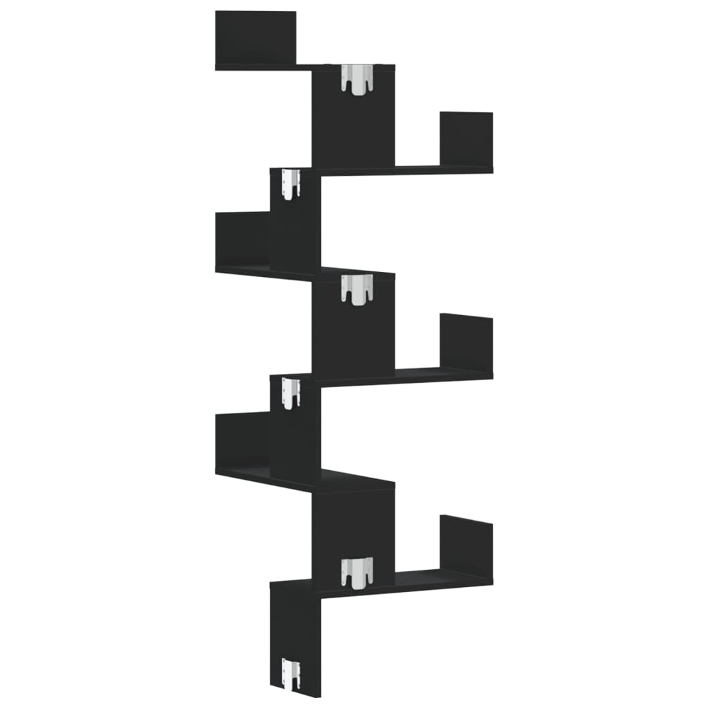 vidaXL Γωνιακή Ραφιέρα Τοίχου Μαύρο 45x45x147 εκ. από Επεξ. Ξύλο