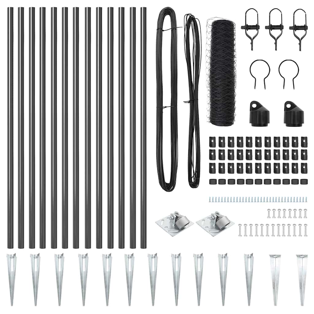 vidaXL Εξάγωνη Περίφραξη Γκρι 0.4x25 μ. Ατσάλι
