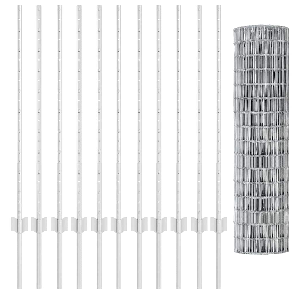 vidaXL Ευρωπαϊκός Φράκτης με 22 Στυλίσκους Ασημί 1x25 μ Ατσάλι