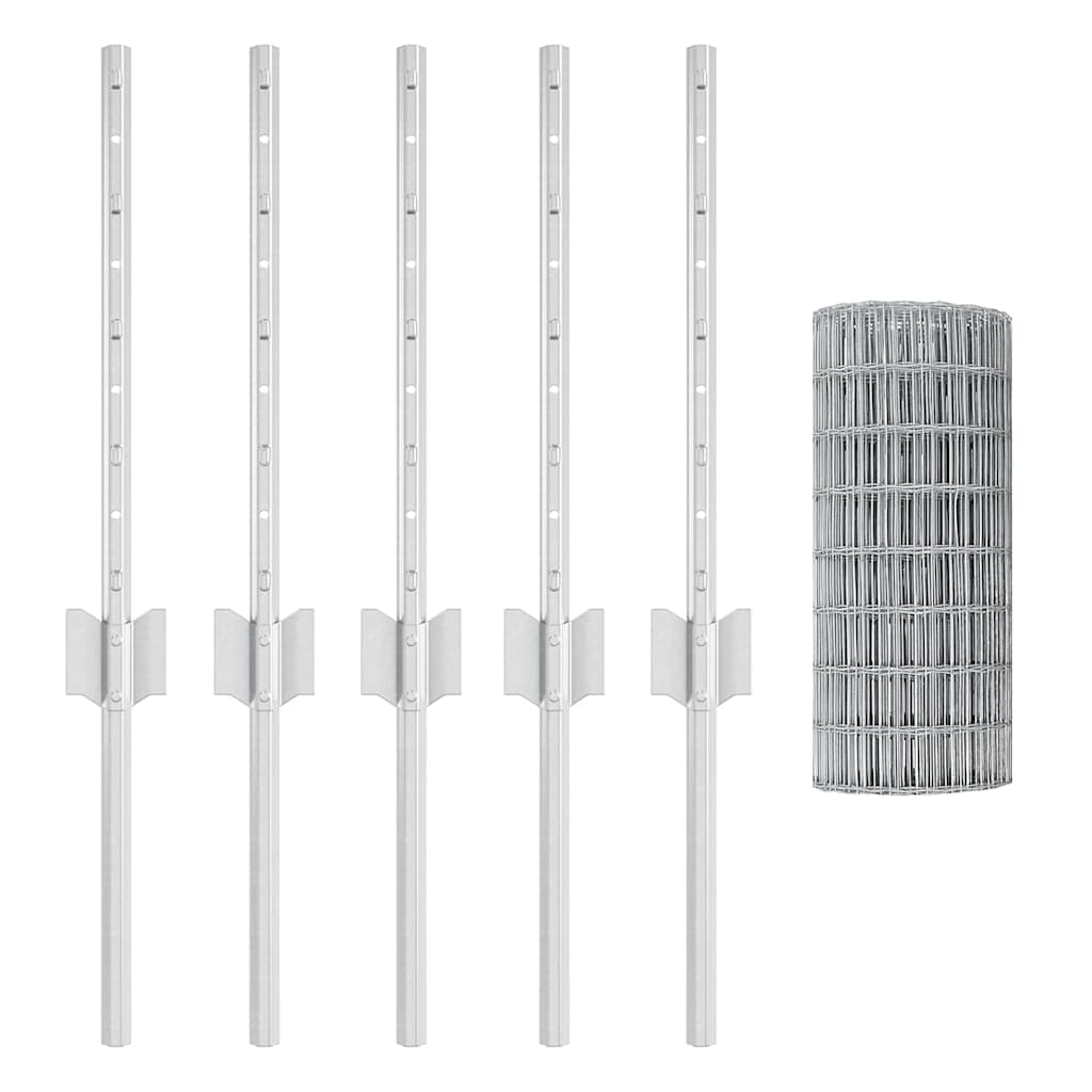 vidaXL Ευρωπαϊκό Φράκτη με 5 Στηρίγματα Ασημί 0,4x10 μ Ατσάλι
