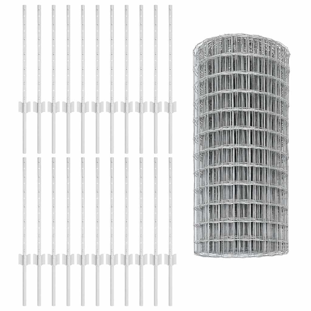 vidaXL Ευρωπαϊκό Φράχτη με 11 Υποστηρίξεις Ασημί 0.6x50 μ Ατσάλι