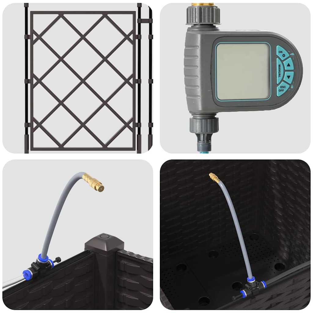 Αυτή η γλάστρα κήπου με άρδευση είναι μια μοντέρνα λύση σχεδιασμένη για τους λάτρεις της υπαίθρου. Το κομψό ορθογώνιο σχήμα της, σε συνδυασμό με ένα υφαντό σχέδιο, προσθέτει μια σύγχρονη αίσθηση στον κήπο ή στην ταράτσα σας. Ιδανική για το φύτεμα μιας ποικιλίας φυτών, αυτή η γλάστρα προσφέρει μια σημαντική, αισθητικά ευχάριστη βάση για τις κηπουρικές σας φιλοδοξίες. Ενσωματώνεται άψογα σε οποιαδήποτε διακόσμηση κήπου, παρέχοντας μια λειτουργική αλλά και κομψή επιλογή για τους οικιακούς κηπουρούς. Η γλάστρα είναι τέλεια για αυτούς που επιθυμούν να ενισχύσουν τον εξωτερικό τους χώρο με πλούσιο πράσινο, εμπλουτισμένο από ένα καινοτόμο σύστημα ποτίσματος που προάγει την υγιή ανάπτυξη των φυτών. Ο ανυψωμένος σχεδιασμός της προσφέρει μια κομψότητα ενώ διασφαλίζει πρακτική χρηστικότητα, μετατρέποντας αυτό το κομμάτι σε μια απαραίτητη προσθήκη για τους κηπουρικούς ενθουσιώδεις.
