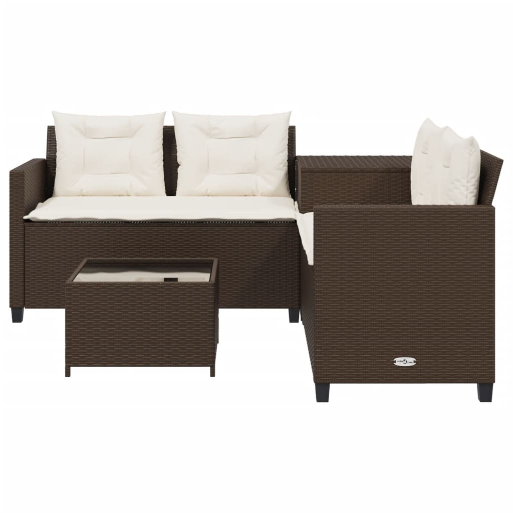 vidaXL Καναπές Κήπου Γωνιακός Καφέ Συνθ. Ρατάν Τραπέζι + Μαξιλάρια