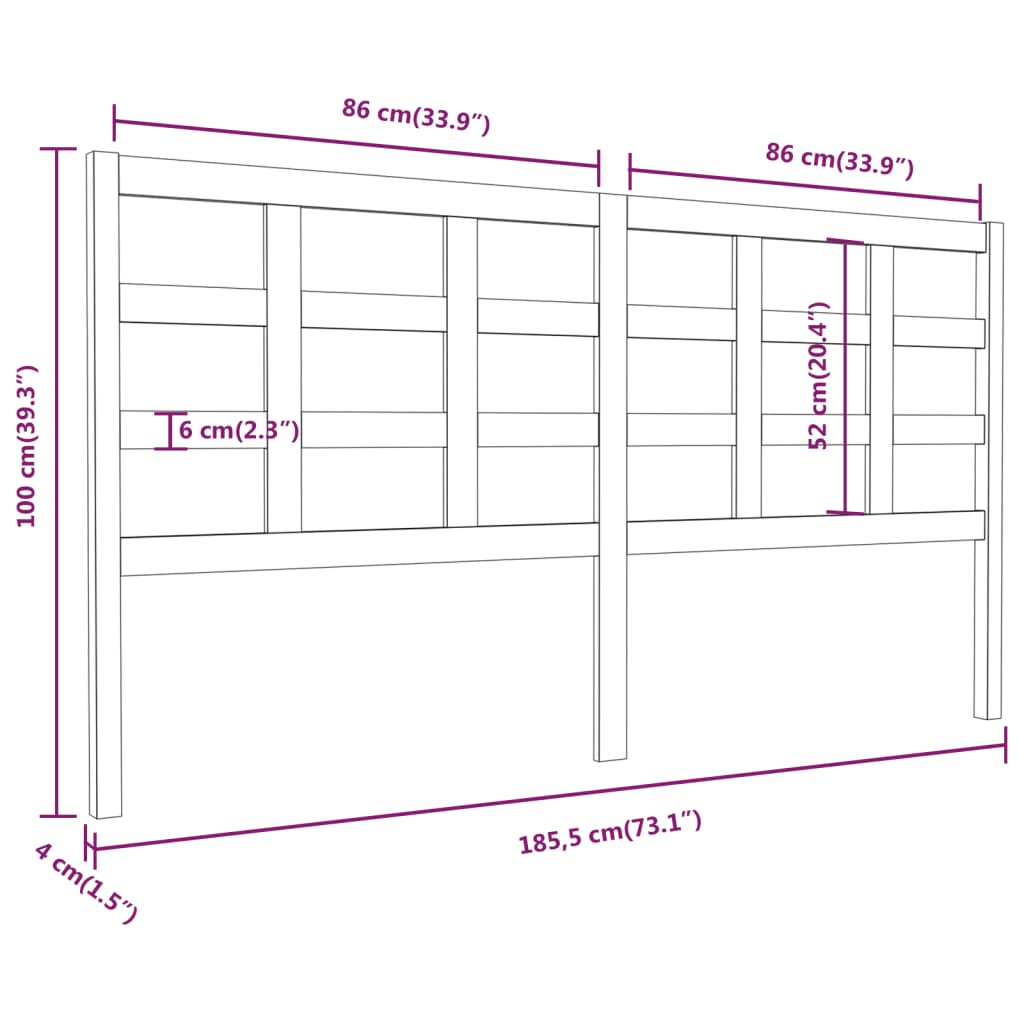 vidaXL Κεφαλάρι Κρεβατιού Μελί 185,5 x 4 x 100 εκ. Μασίφ Ξύλο Πεύκου