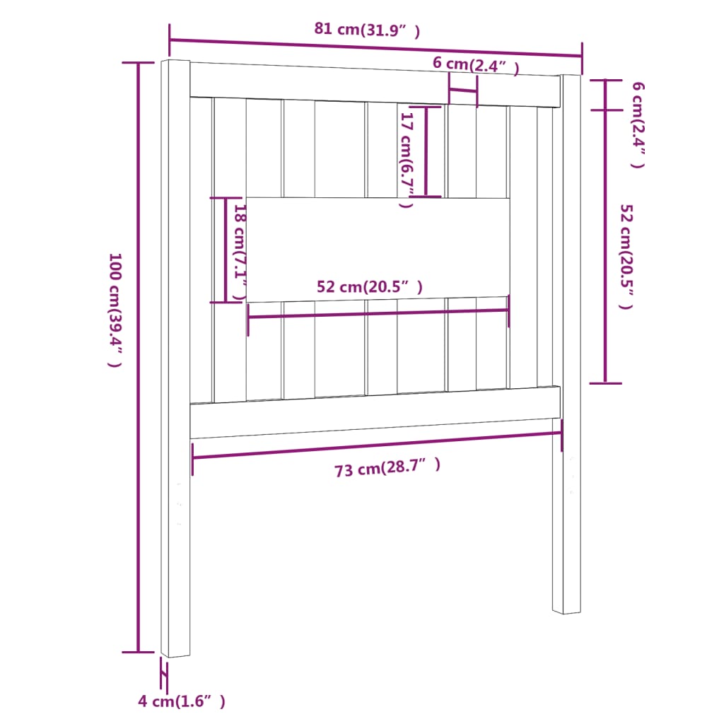 vidaXL Κεφαλάρι Μαύρο 81 x 4 x 100 εκ. από Μασίφ Ξύλο Πεύκου