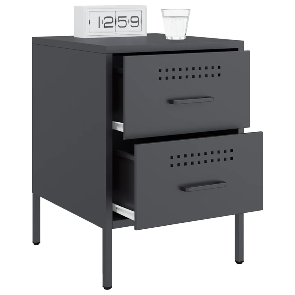 vidaXL Κομοδίνα 2 τεμ. Ανθρακί 36x39x50,5 εκ. από Χάλυβα