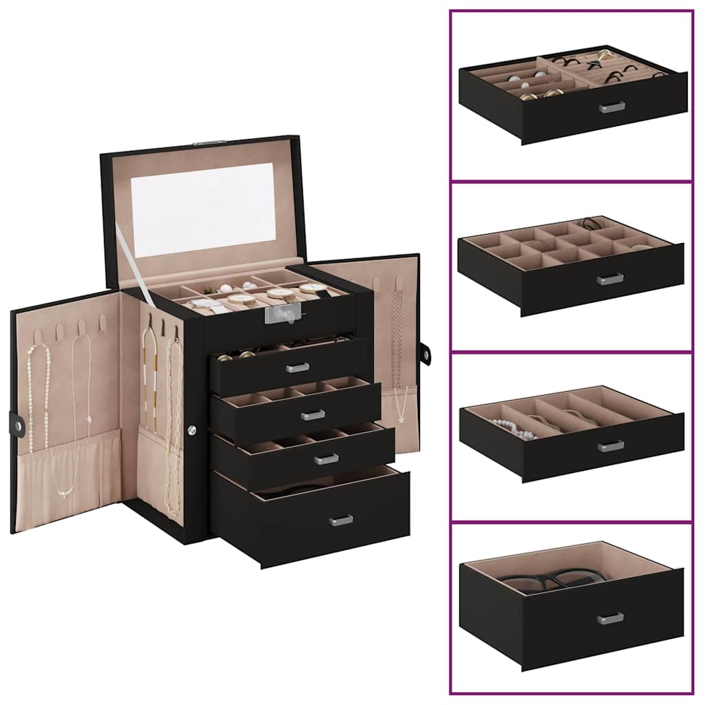 vidaXL Κοσμηματοθήκη 5 Επιπέδων με καθρέφτη Κλειδώσιμο Μαύρο