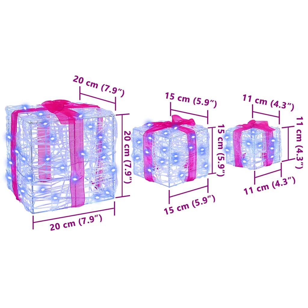 vidaXL Κουτί Δώρου με 60 LED 3 pcs Μπλε 20 x 20 x 20 εκ. Ακρυλικό