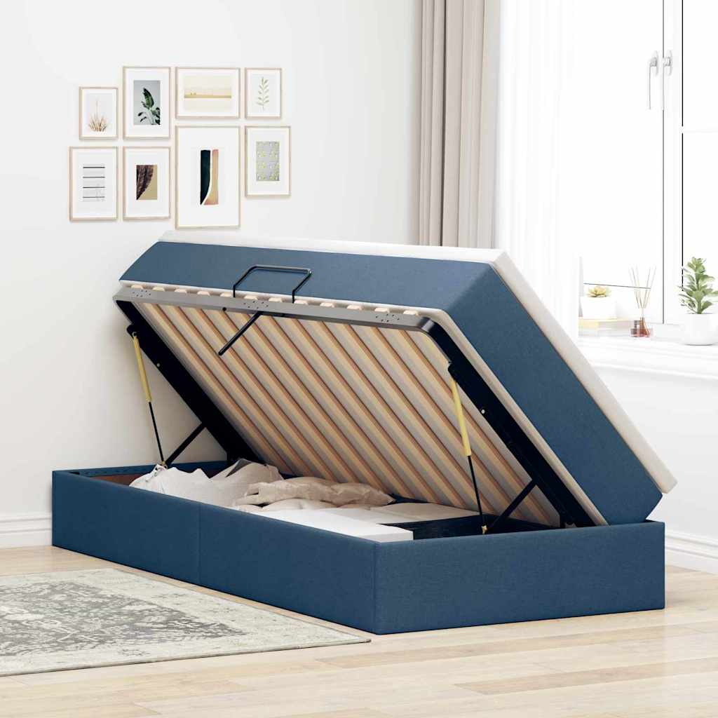 vidaXL Κρεβάτι με αποθηκευτικό χώρο και στρώμα Μπλε 90 x 200 cm