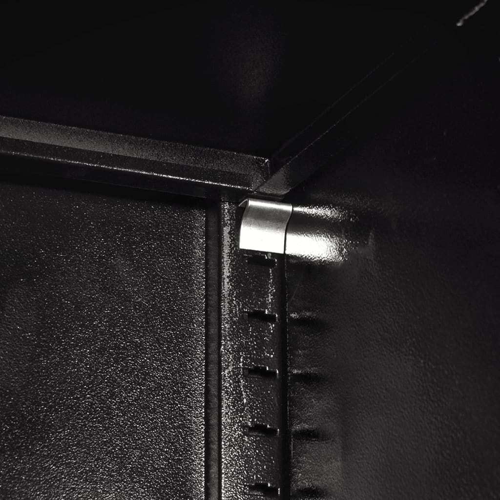Το ντουλάπι αποθήκευσης εργαλείων είναι κατασκευασμένο από χάλυβα υψηλής ποιότητας με μια εξαιρετικά ισχυρή επίστρωση που αντιστέκεται στις γρατζουνιές, καθιστώντας το ιδιαίτερα ανθεκτικό και στιβαρό αλλά και εύκολο στην συντήρηση και το καθάρισμα. Η συναρμολόγηση είναι εύκολη. Αυτή η ντουλάπα εργαλείων μπορεί να χρησιμοποιηθεί με την εργαλειοθήκη μας για αύξηση του αποθηκευτικού χώρου.