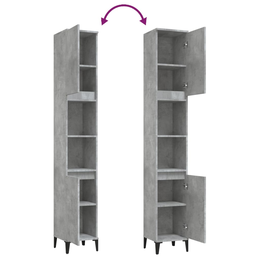 vidaXL Ντουλάπι Μπάνιου Γκρι Σκυροδέματος 30x30x190 εκ. Επεξ. Ξύλο