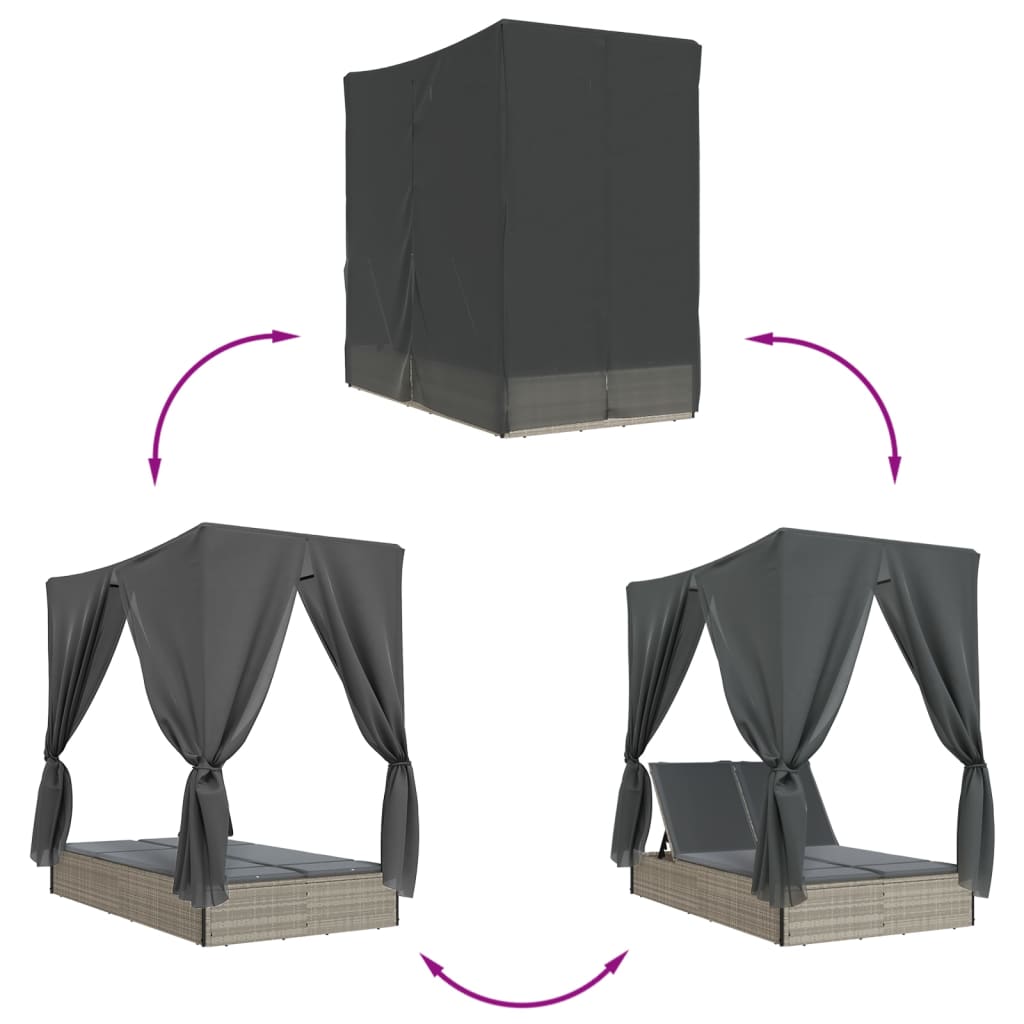 vidaXL Ξαπλώστρα Διπλή Αν. Γκρι Συνθετικό Ρατάν Σκίαστρο και Μαξιλάρια