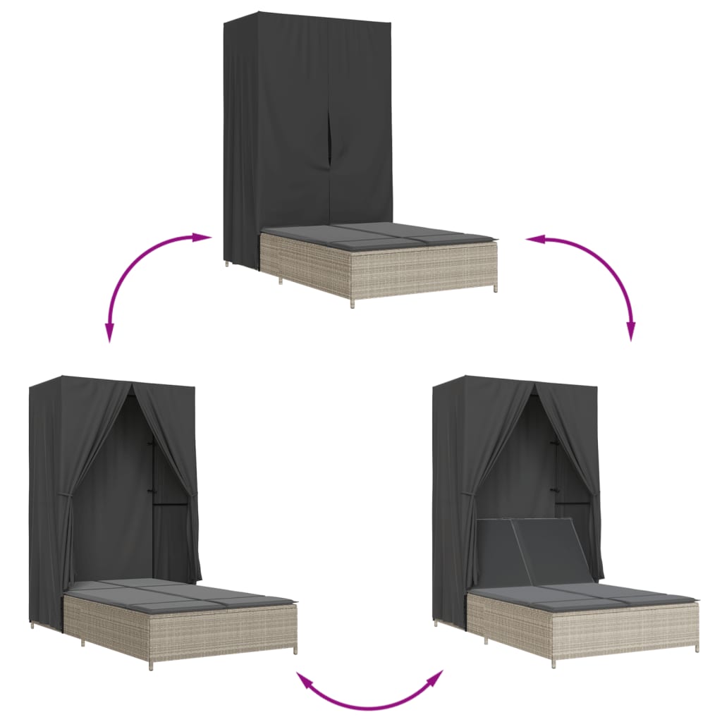 vidaXL Ξαπλώστρα Διπλή Αν. Γκρι Συνθετικό Ρατάν Σκίαστρο και Μαξιλάρια