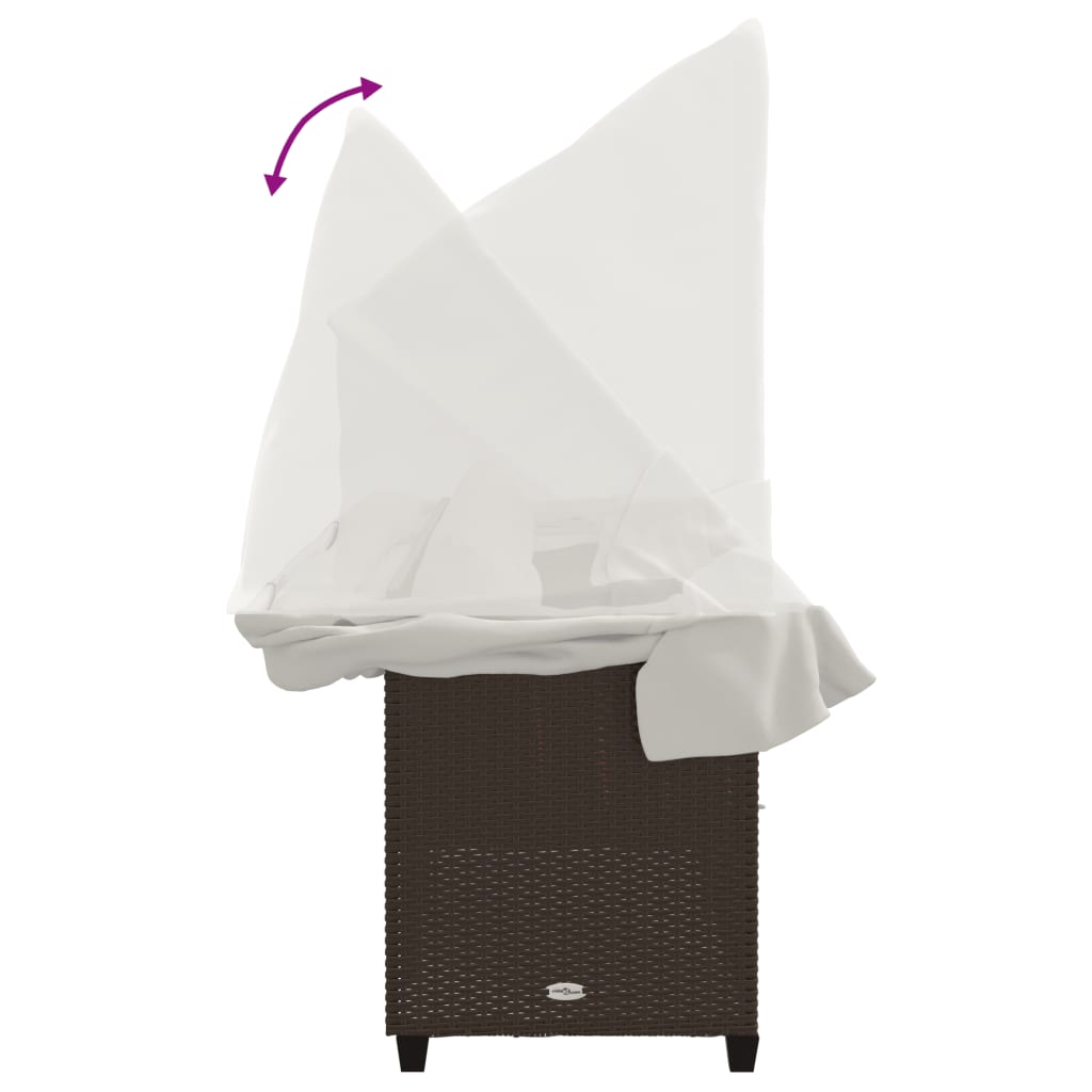 vidaXL Ξαπλώστρα Καφέ Συνθετικό Ρατάν με Σκίαστρο και Μαξιλάρια