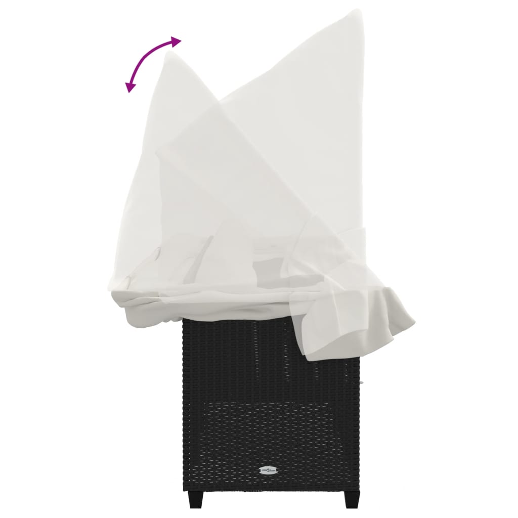 vidaXL Ξαπλώστρα Μαύρη Συνθετικό Ρατάν με Σκίαστρο και Μαξιλάρια