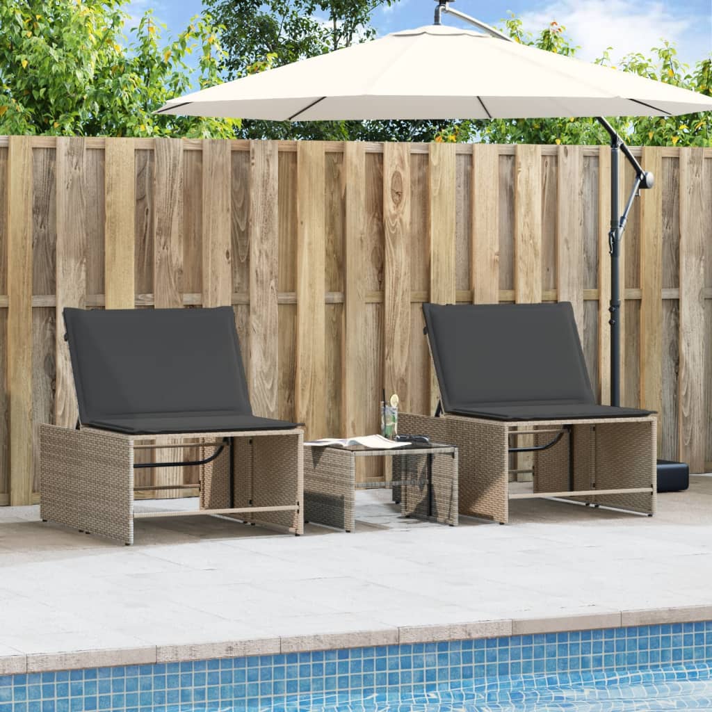 vidaXL Ξαπλώστρες 2 τεμ. με Τραπέζι από Γκρι Συνθετικό Ρατάν