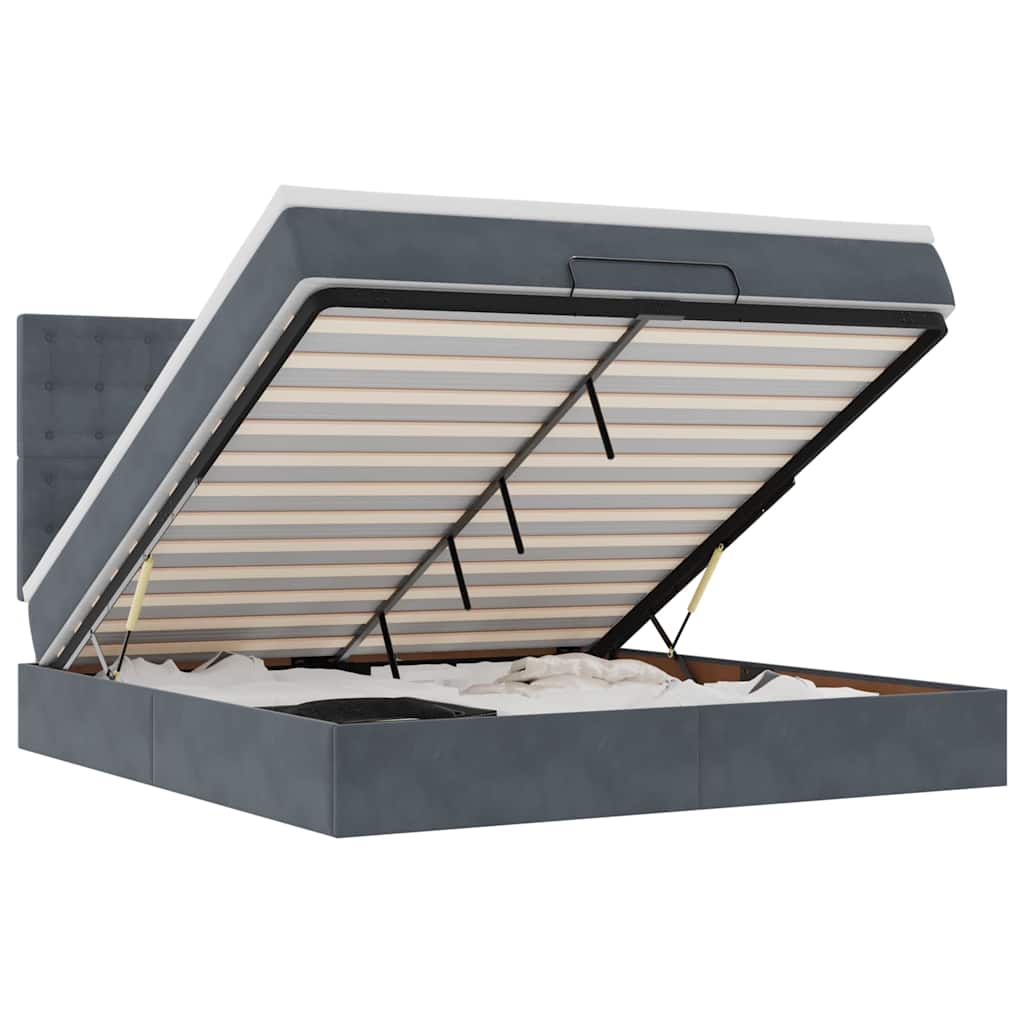 vidaXL Οθωμανικό κρεβάτι με στρώματα & LEDs Σκούρο γκρι Βελούδο