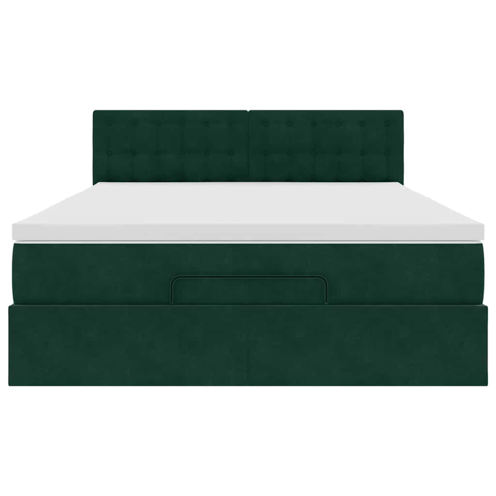 vidaXL Οθωμανικό κρεβάτι με στρώμα & LEDs Σκούρο πράσινο Βελούδο