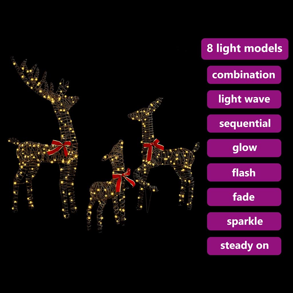 vidaXL Οικογένεια Ελαφιών 3 pcs Θερμό λευκό 67 x 26 x 127 εκ Ρατάν
