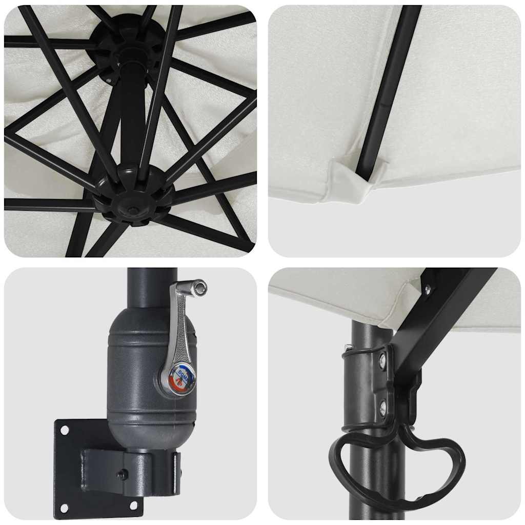 - Σχεδίαση εξοικονόμησης χώρου: Η βάση με βραχίονα δημιουργεί περισσότερο χώρο κάτω από την ομπρέλα, χωρίς να έχει κεντρική στήλη που να εμποδίζει.