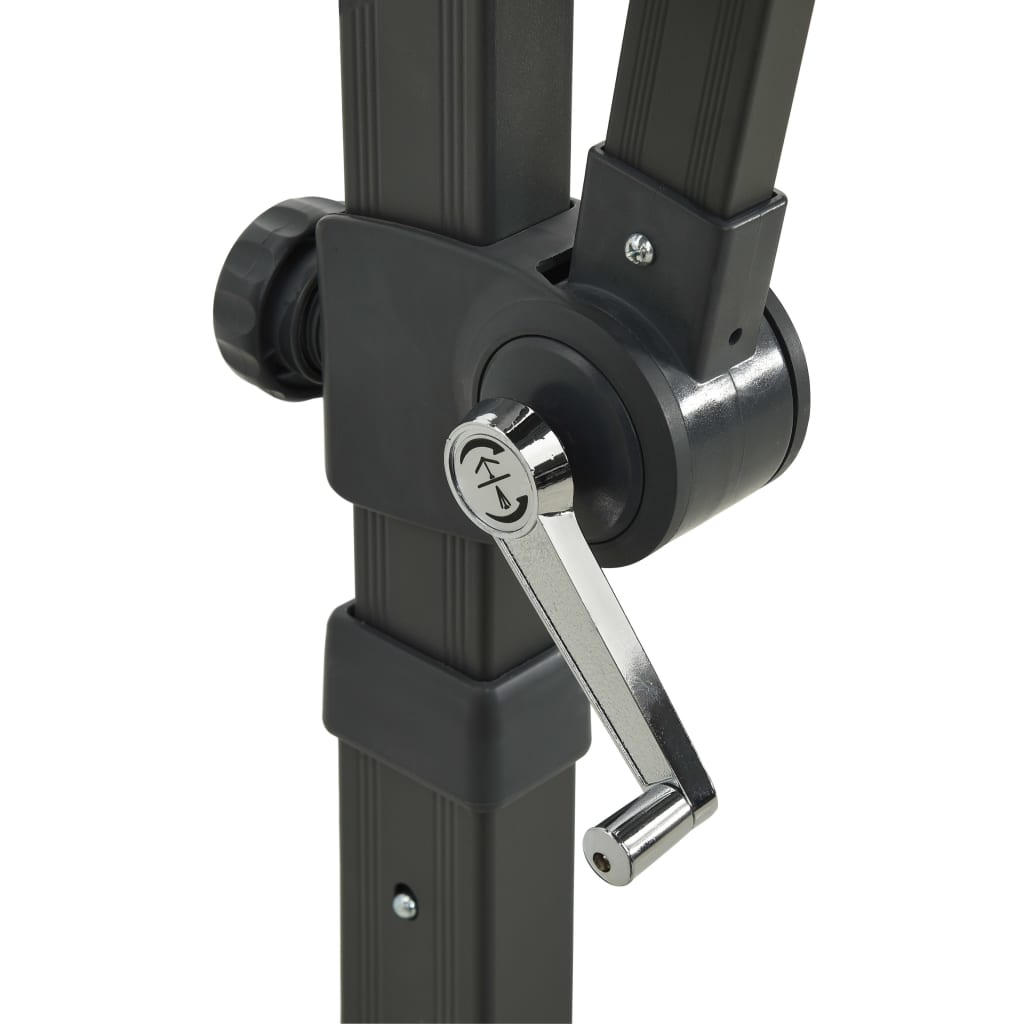Κατασκευασμένο από πολυεστέρα με αντίσταση στην υπεριώδη ακτινοβολία και το ξεθώριασμα, το κάλυμμα της ομπρέλας σάς παρέχει βέλτιστη προστασία από τον ήλιο και καθαρίζεται εύκολα. Διαθέτει στιβαρή σταυρωτή βάση, η οποία προσφέρει σταθερότητα. Ο μοναδικός σχεδιασμός αυτής της ομπρέλας σάς επιτρέπει να της δίνετε κλίση και να την περιστρέφετε κατά 360 μοίρες, εμποδίζοντας τον ήλιο. Ο ισχυρός αλουμινένιος ιστός και οι 8 ακτίνες, καθιστούν την κρεμαστή ομπρέλα πολύ σταθερή και ανθεκτική. Η ομπρέλα κήπου μπορεί να ανοίξει και να κλείσει με ευκολία, χάρις στον μηχανισμό με μανιβέλα. Επιπλέον, ο σχεδιασμός με διπλή οροφή βοηθά στον καλό αερισμό.