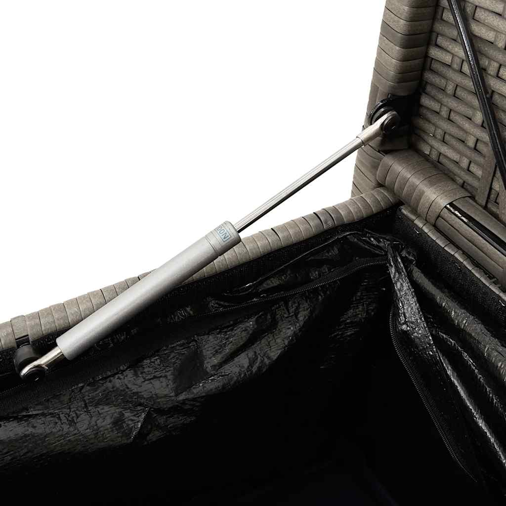 vidaXL Πάγκος αποθήκευσης κήπου με μαξιλάρι Γκρι Poly Rattan