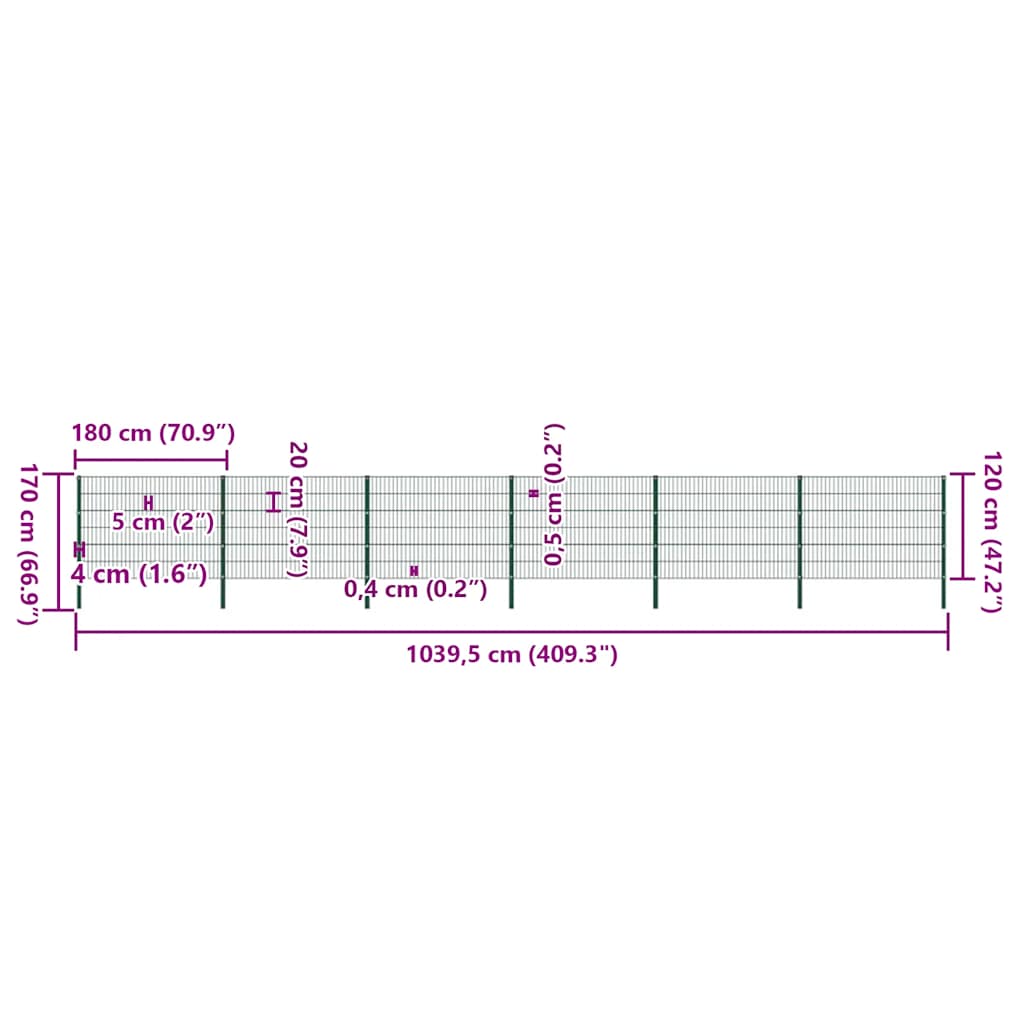 vidaXL Πάνελ Περίφραξης με Στύλους Σιδερένιο Πράσινο 1040x120 εκ.
