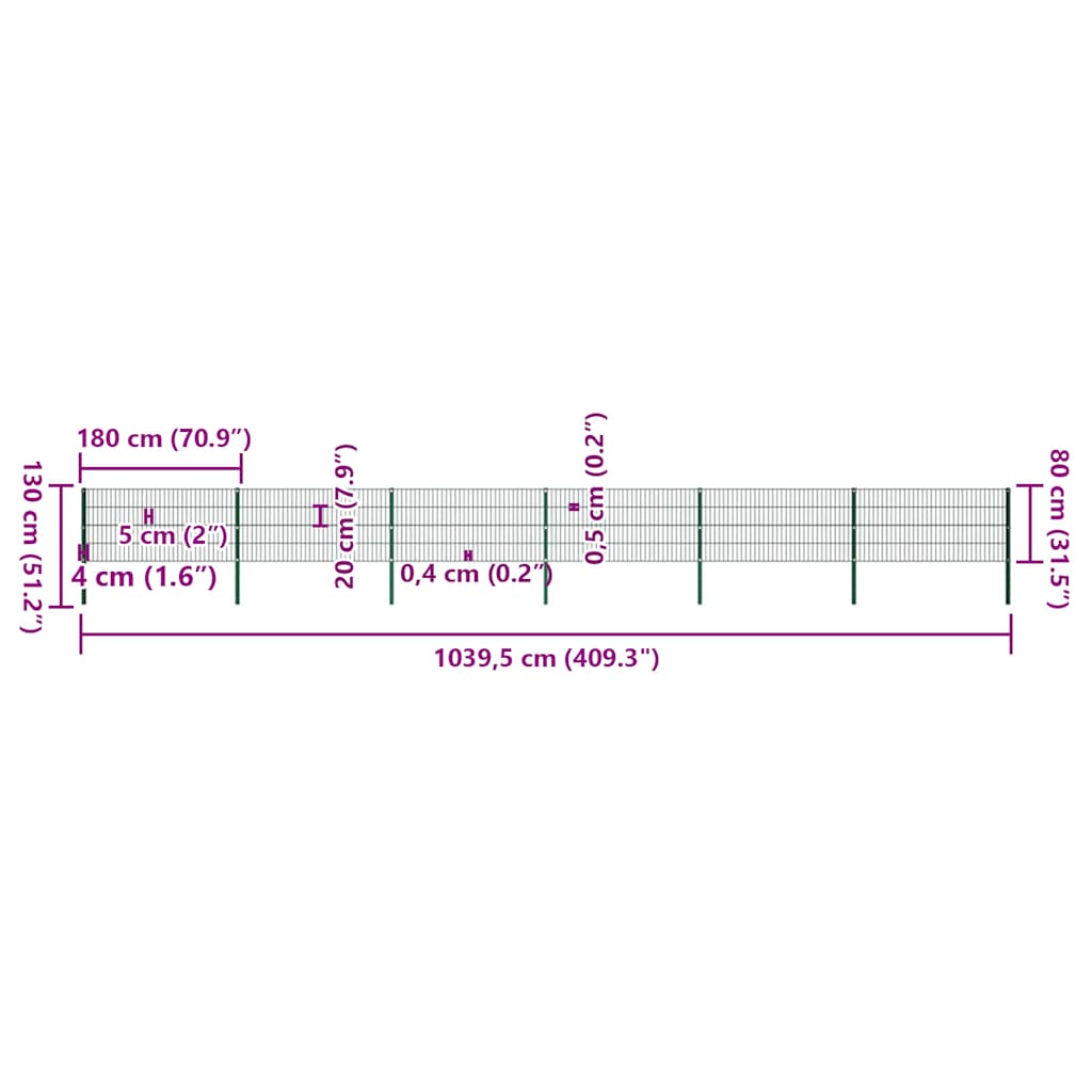 vidaXL Πάνελ Περίφραξης με Στύλους Σιδερένιο Πράσινο 1040x80 εκ.