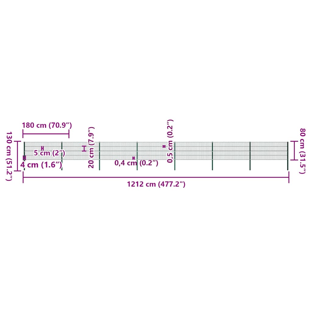 vidaXL Πάνελ Περίφραξης με Στύλους Σιδερένιο Πράσινο 1212 x 80 εκ.