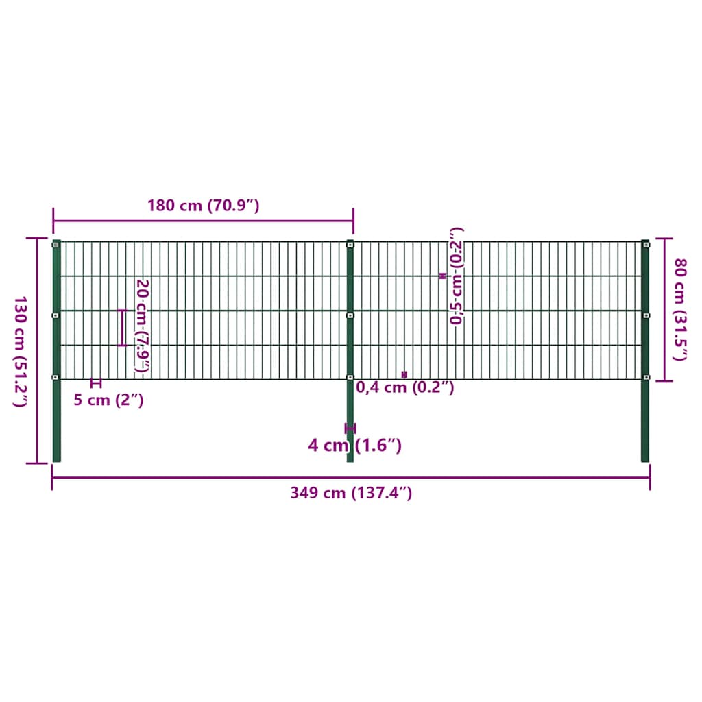 vidaXL Πάνελ Περίφραξης με Στύλους Σιδερένιο Πράσινο 349 x 80 εκ.