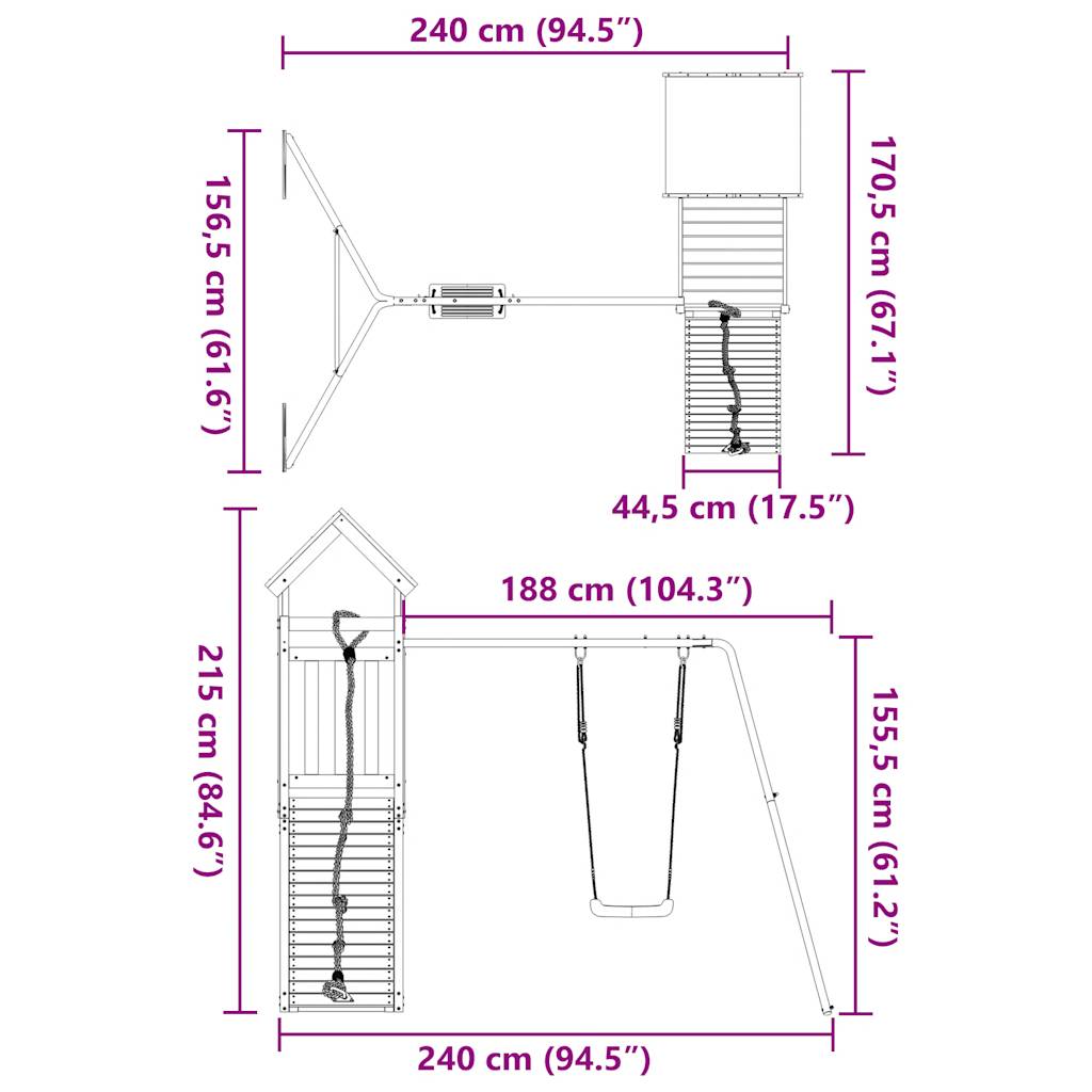 • Υλικό πύργου παιχνιδιού: Εμποτισμένο υπό πίεση ξύλο πεύκου