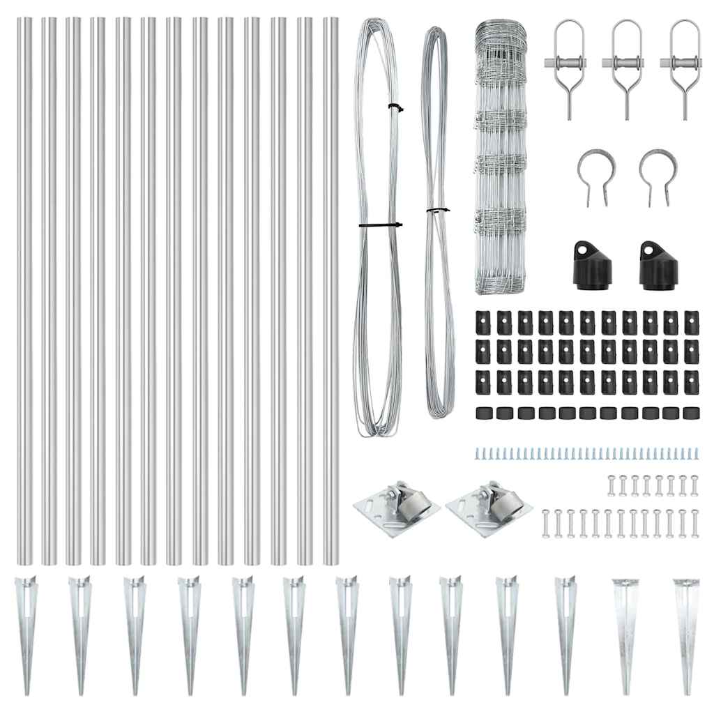 Αυτή η περίφραξη αγρού της vidaXL έχει ανθεκτικό σχεδιασμό από γαλβανισμένο ατσάλι και προσφέρει μεγάλη ευελιξία, κάνοντάς την μια ιδανική λύση για διάφορες εξωτερικές ανάγκες. Η κομψή ασημένια εμφάνιση και η στιβαρή δομή της προσφέρουν ασφάλεια και αναδεικνύουν τον εξωτερικό σου χώρο, κάνοντάς τη τέλεια για κήπους και παρόμοιες περιοχές.